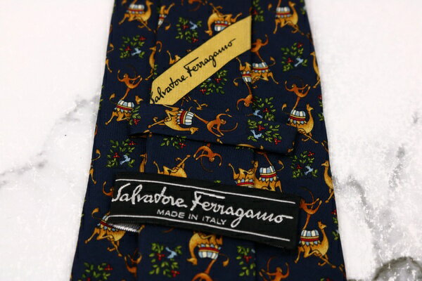 ブランド名:サルヴァトーレフェラガモ Salvatore Ferragamo柄:動物柄色:ネイビー素材:シルクサイズ:大剣幅:約10cm状態追記:大剣表面に薄汚れ箇所、中継ぎ表面から裏面にかけて薄汚れがございますが、全体的には状態の良いお品です。