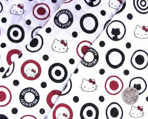 <Qキャラクター・キルティング生地>キティ(赤)#170【キルティング】【キルト】【キャラクター】【キルティング生地】【布】